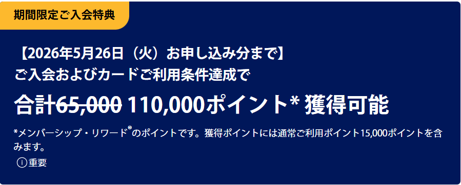 - 貯まるポイント:メンバーシップリワードポイント(有効期限なし)