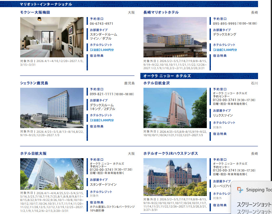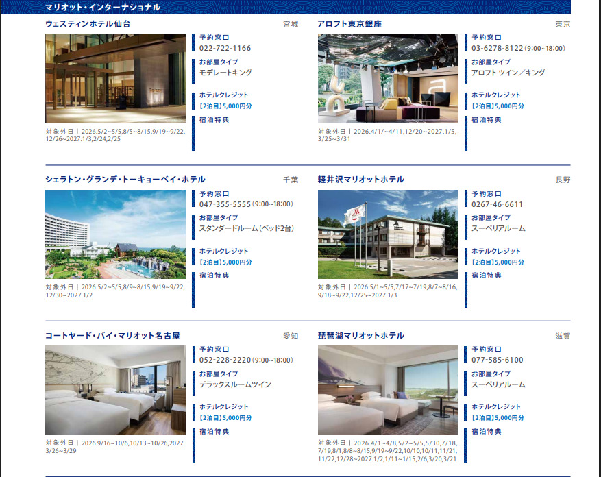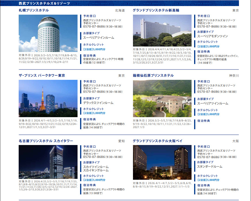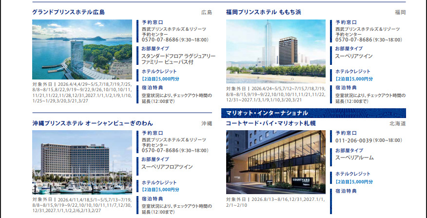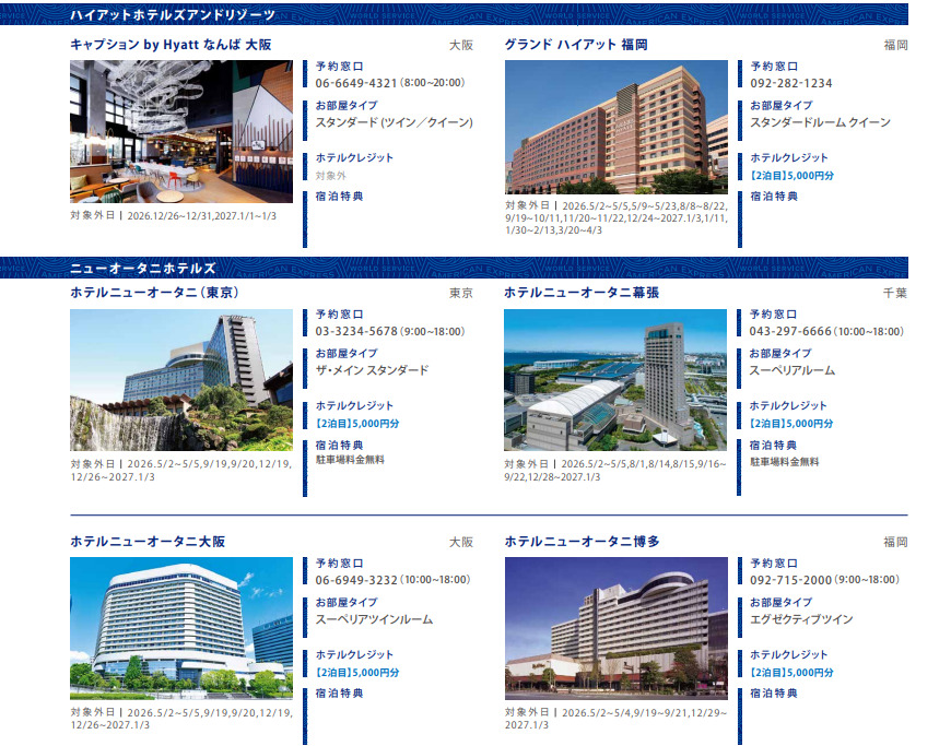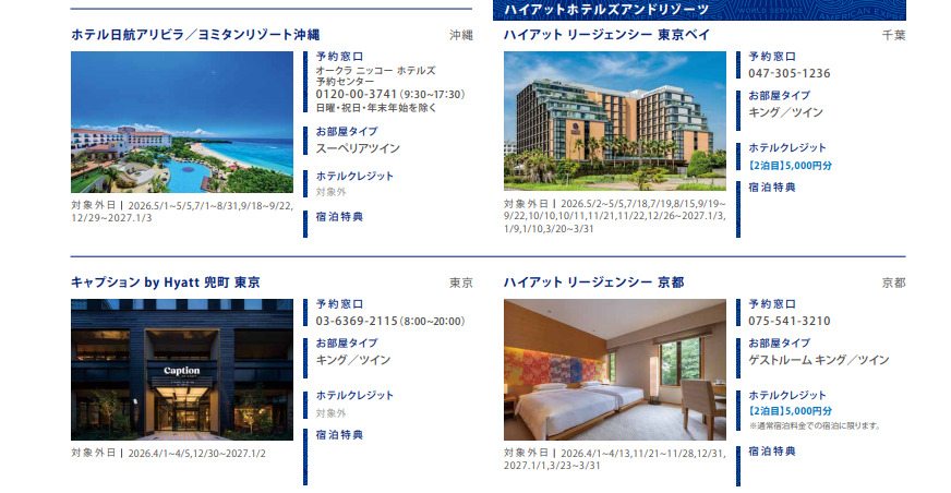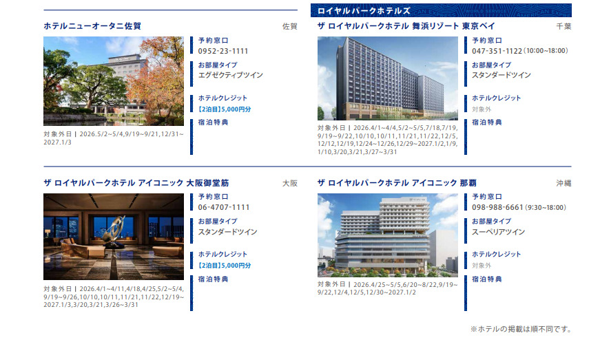 2026年度対象ホテルは、以下の43のホテルとなっています。