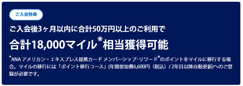 つまり、入会後3か月以内に合計50万円以上のカード利用をした場合