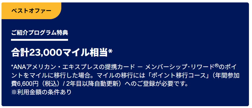 この制度を利用すれば、新規入会者(被紹介者)は、通常公式ホームページからの入会に比べてボーナスポイント獲得条件が低く設定されているという特典を得ることができます。