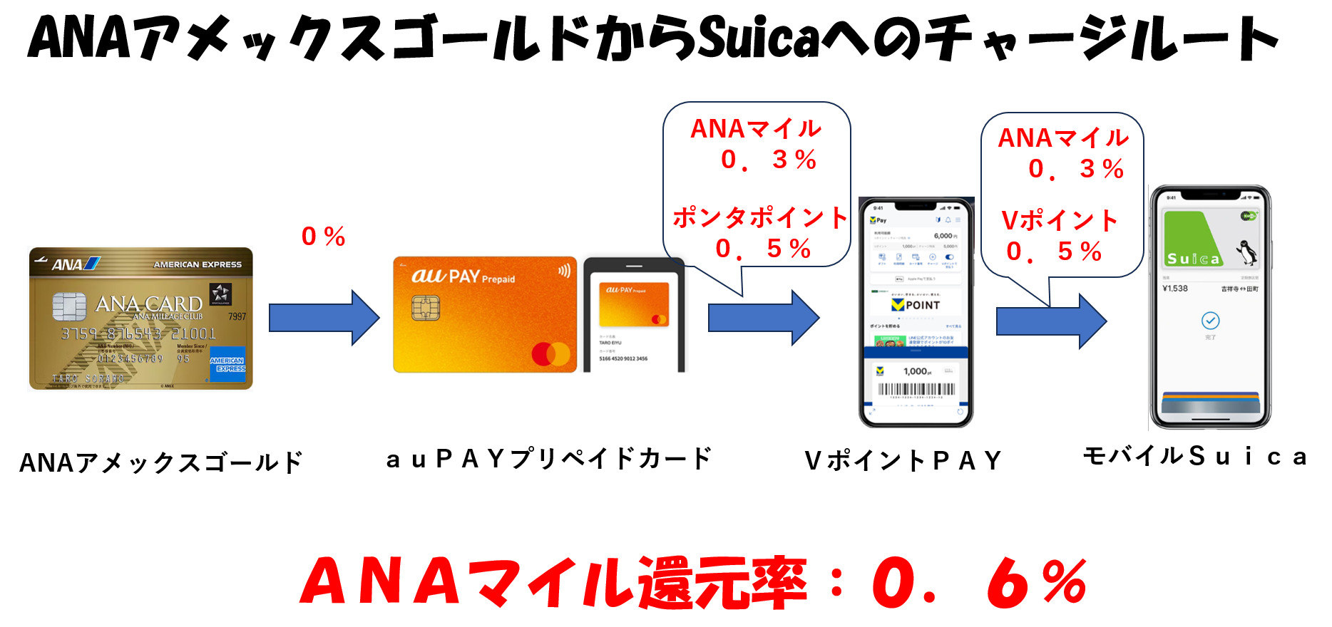 「ANAアメックゴールドカード」でauPayプリペイドカードを使って残高チャージをした場合、アメックスポイントの付与はされません。