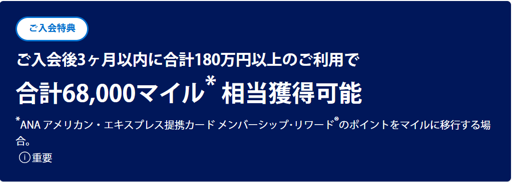 入会後3ヶ月以内に合計180万円以上のご利用で、さらに20000マイル