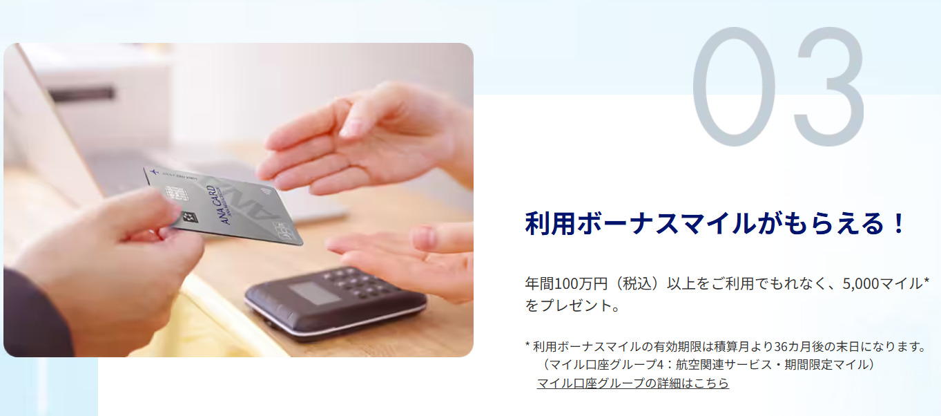 • 毎年3000マイルの継続ボーナスや、100万円利用で5000マイルのボーナスがある