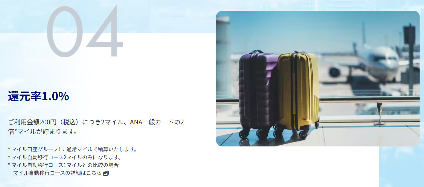 しかし、ANA JCBカードファーストでは「マイル自動移行コース(2マイル)」が標準で設定されており、