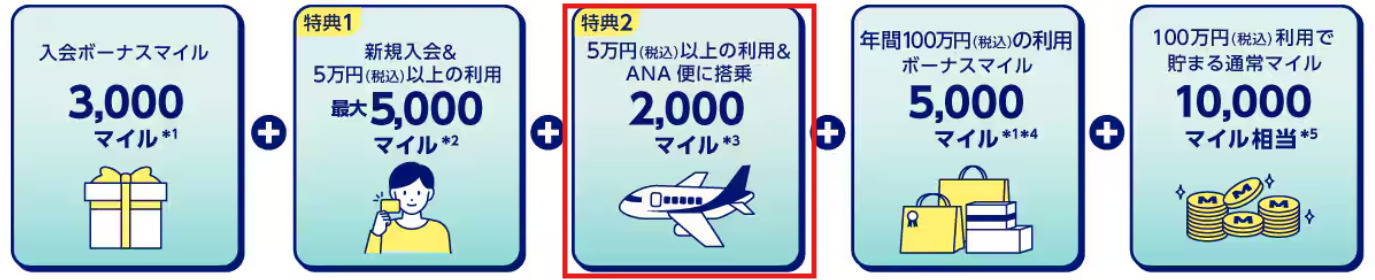 そして、100万円の利用で通常の10000マイルも獲得できます。