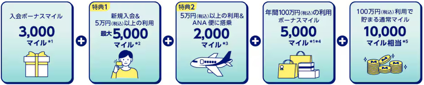 このプログラムを利用して入会することで、通常の入会ボーナスに加えてさらにマイルを獲得できます。