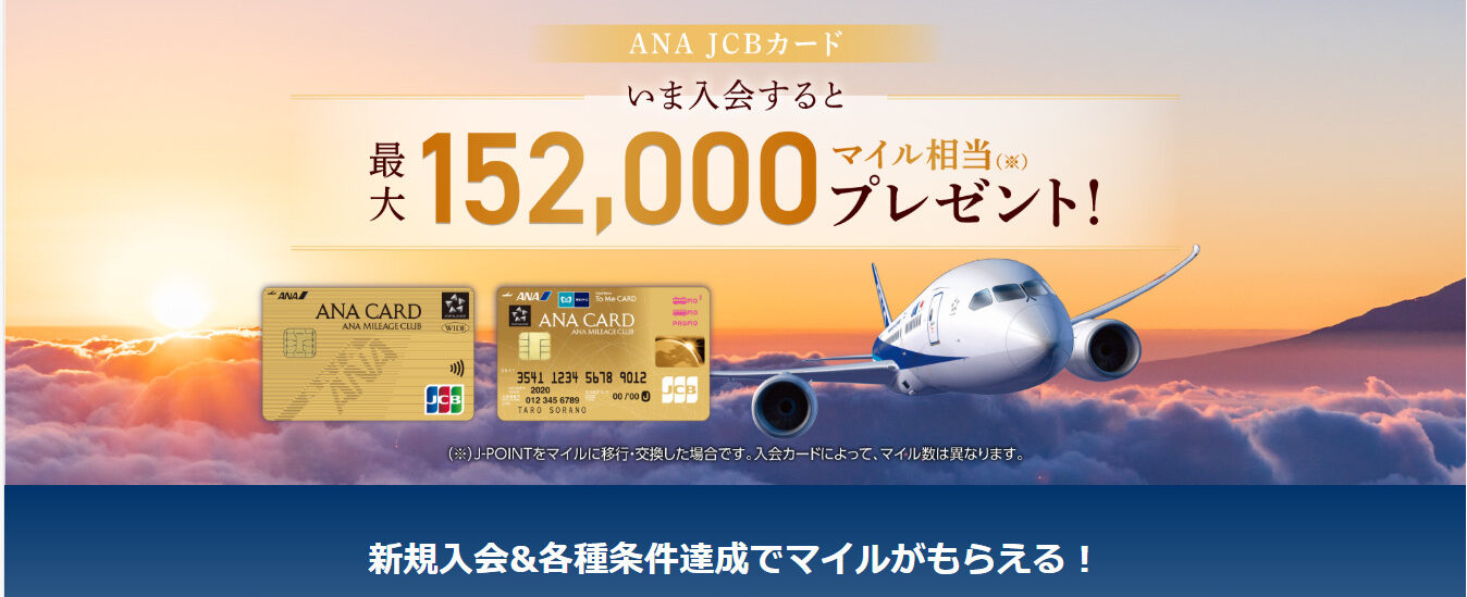 「ANAJCBワイドゴールドカード」を発行する場合は、2000マイル を獲得することが出来ます。