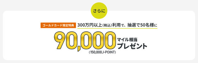 カード利用対象期間で300万円(税込)以上利用し本会員に抽選で50名に
