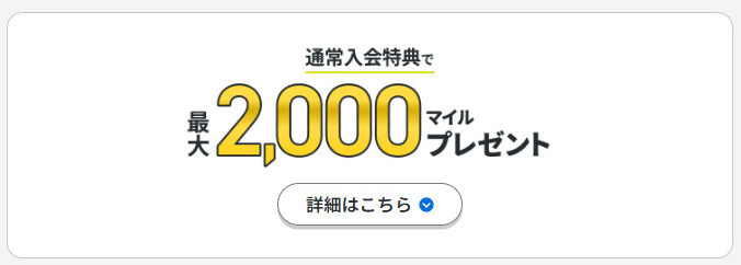 2000マイルとは1%の還元率のカードを利用する場合、20万円の利用が無いと貯めることができないほどのマイル数です。