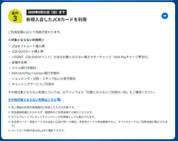ただし、JCBギフトカードの購入など利用が対象外となるものも有るので詳細は確認してください。