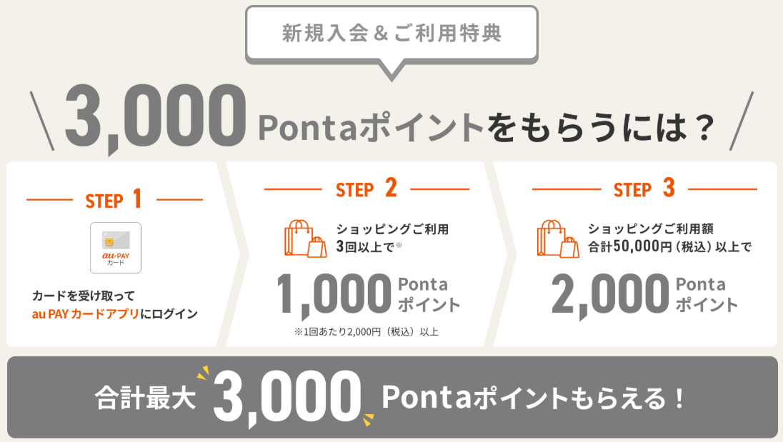 入会の翌月末のauPayカードのショッピング利用が50000円以上で