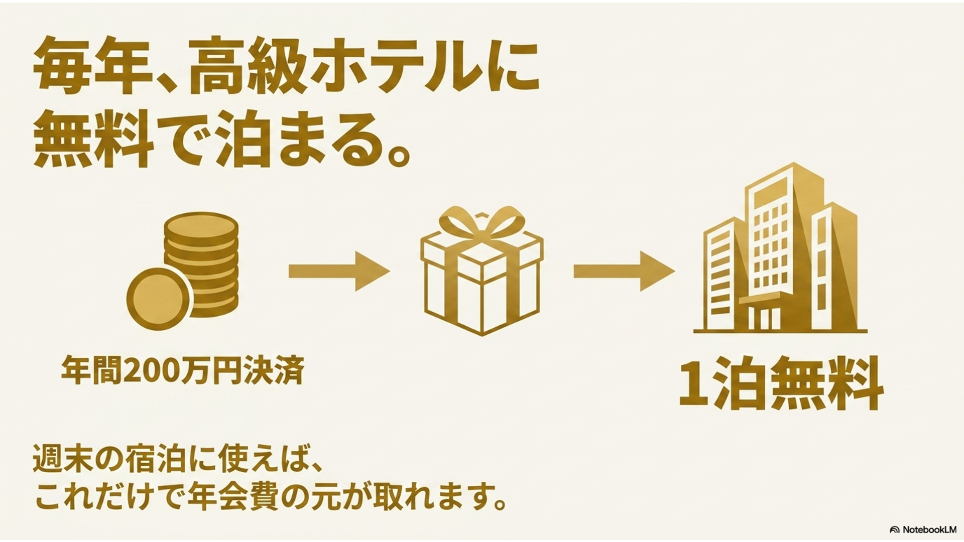 年間200万円決済で国内高級ホテルの「フリー・ステイ・ギフト」を獲得