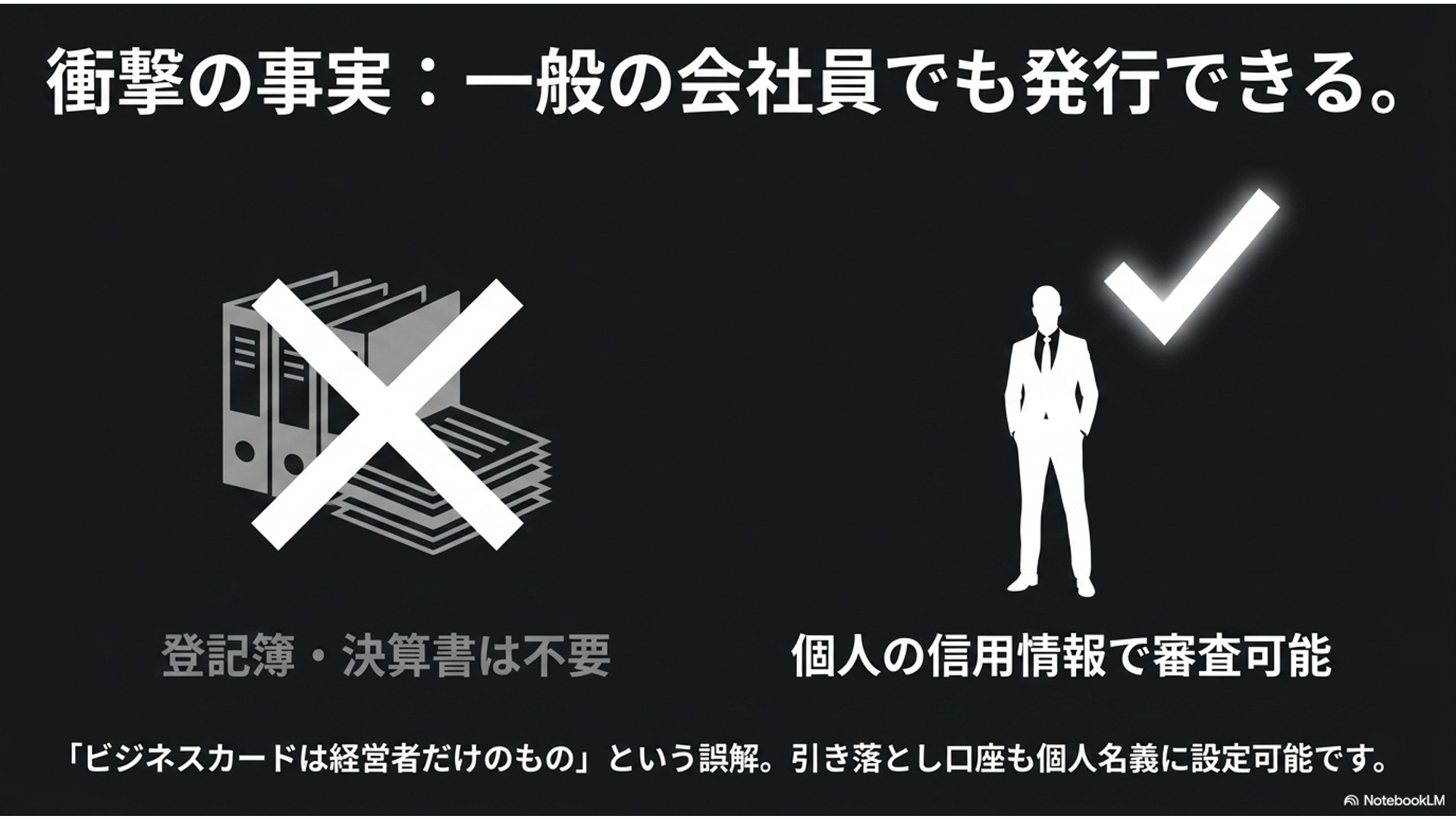 「ビジネスカードは法人代表者や個人事業主しか作れない」と思われがちですが、それは大きな誤解です。