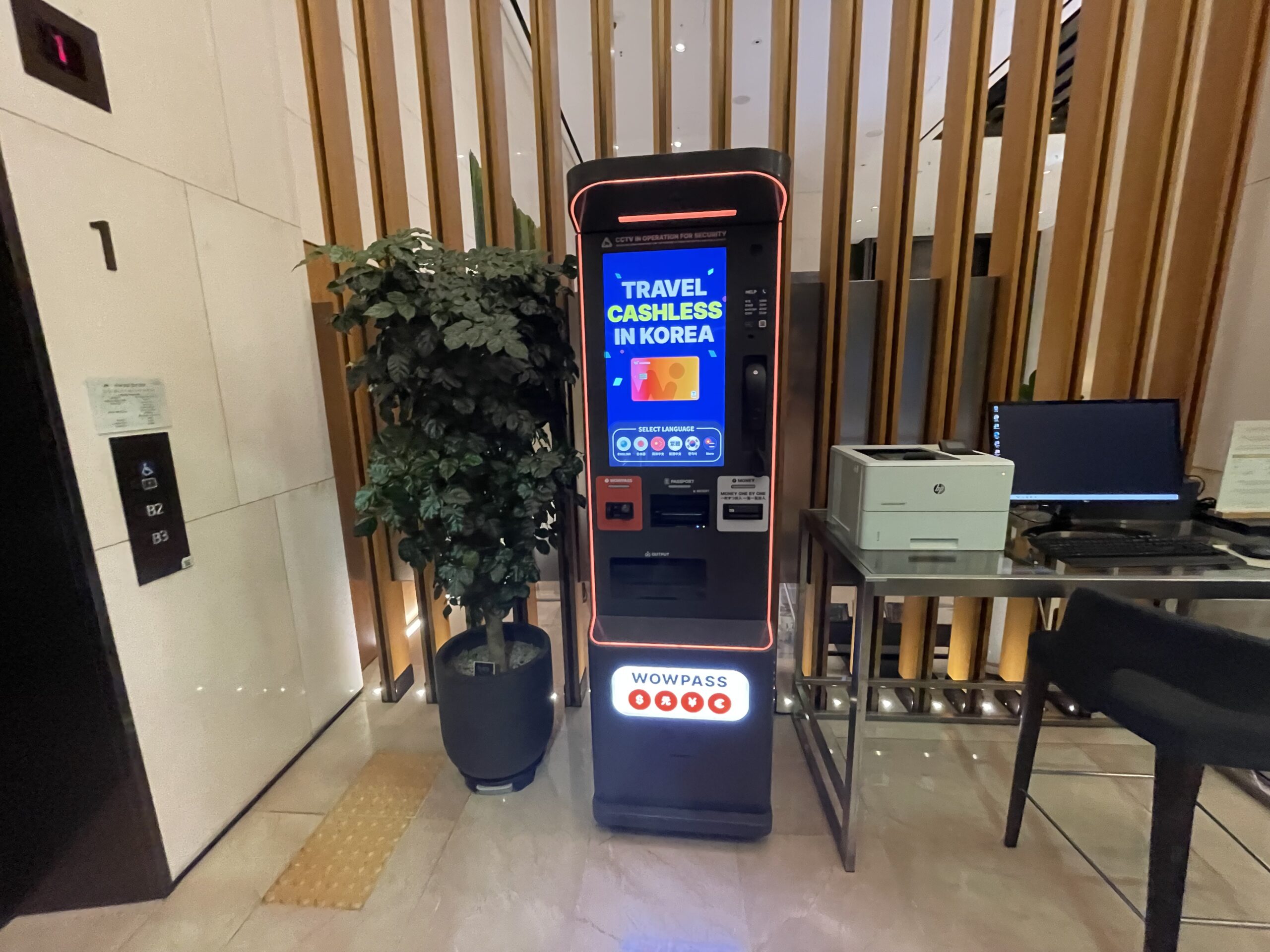 ロビーの奥右側には、上の写真のようにPCとwowpass発券機が備えられています。