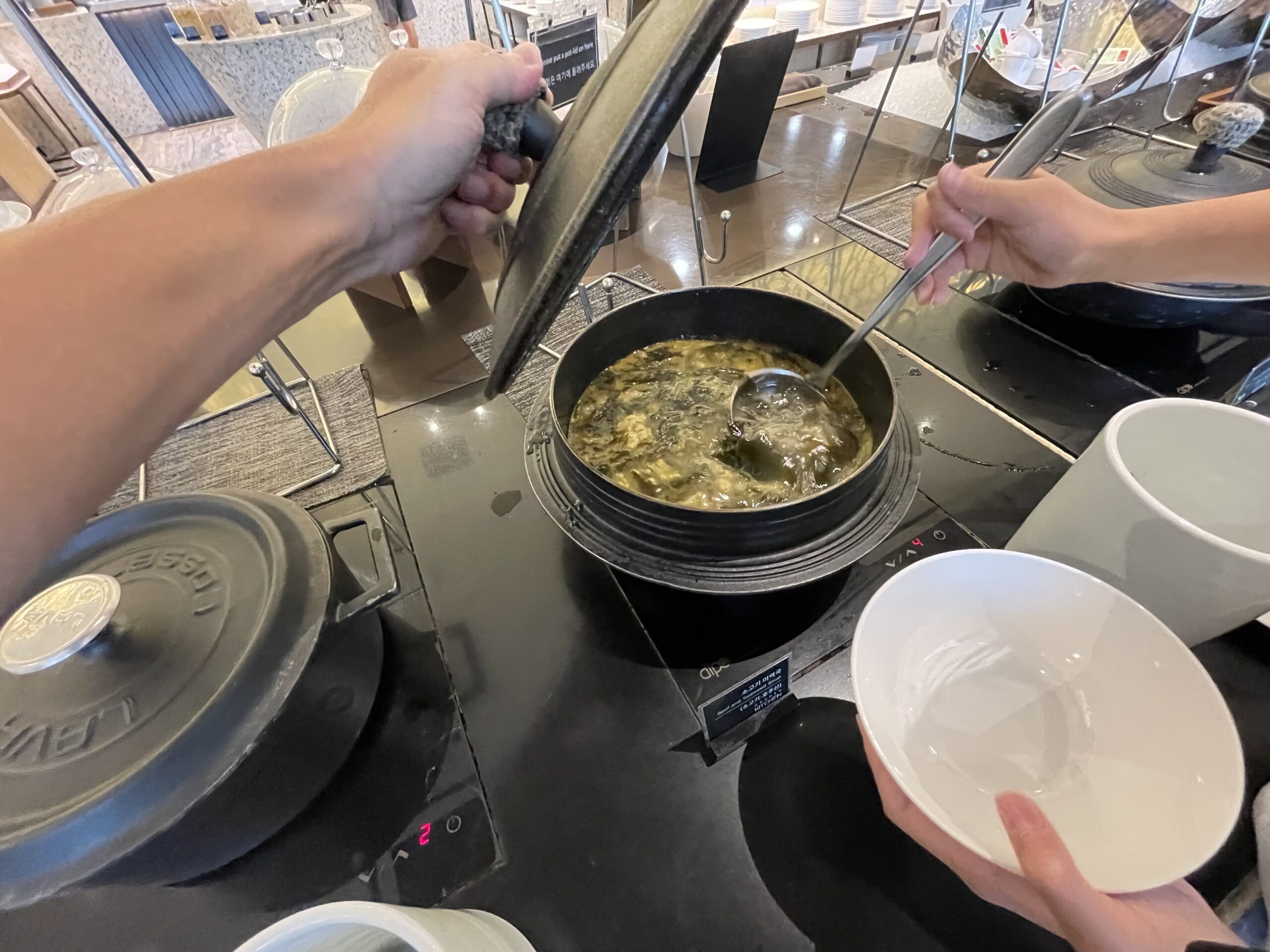 非常に多くの種類の料理が提供されていて、特に韓国系のスープ料理がいくつも提供されていたのが特徴的でした。
