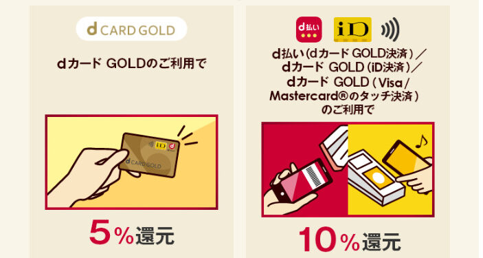 または、「dカードゴールカード」を連携させた「d払い」「iD」を利用して、10%還元でポイントを獲得する方法