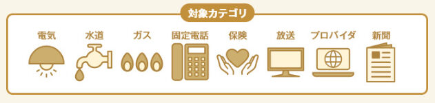 電気、ガス、水道、固定電話、放送、プロバイダ、新聞、保険