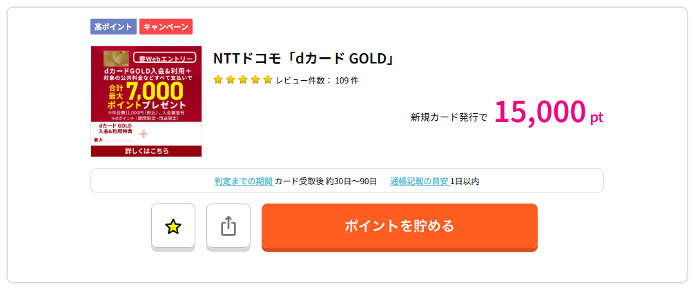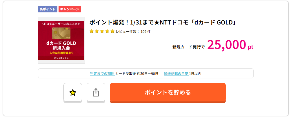 しかし、「dカードゴールド」のポイントサイトの広告案件は、下がったととは言え高額になることが時々ある案件ですので、広告に出た時は即作るで良いのかもしれません。
