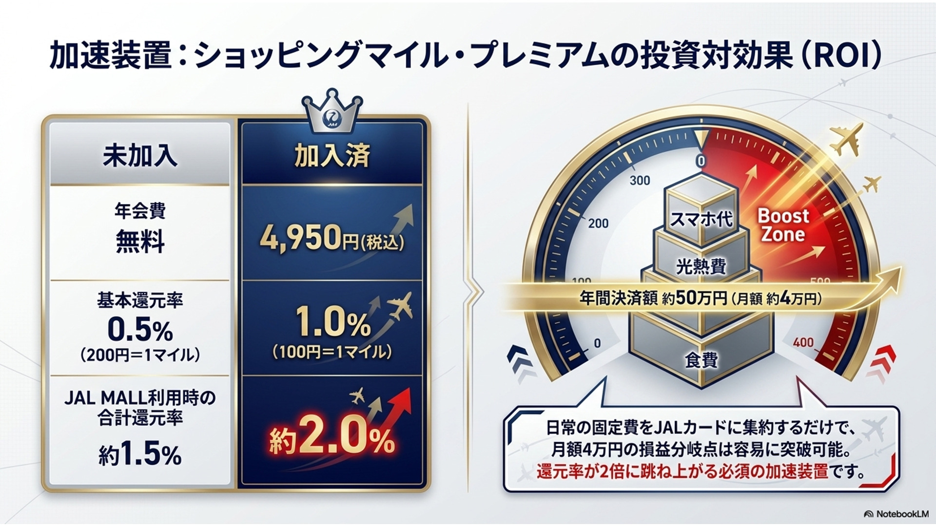 • ショッピングマイルプレミアム加入による還元率の違いと損益分岐点