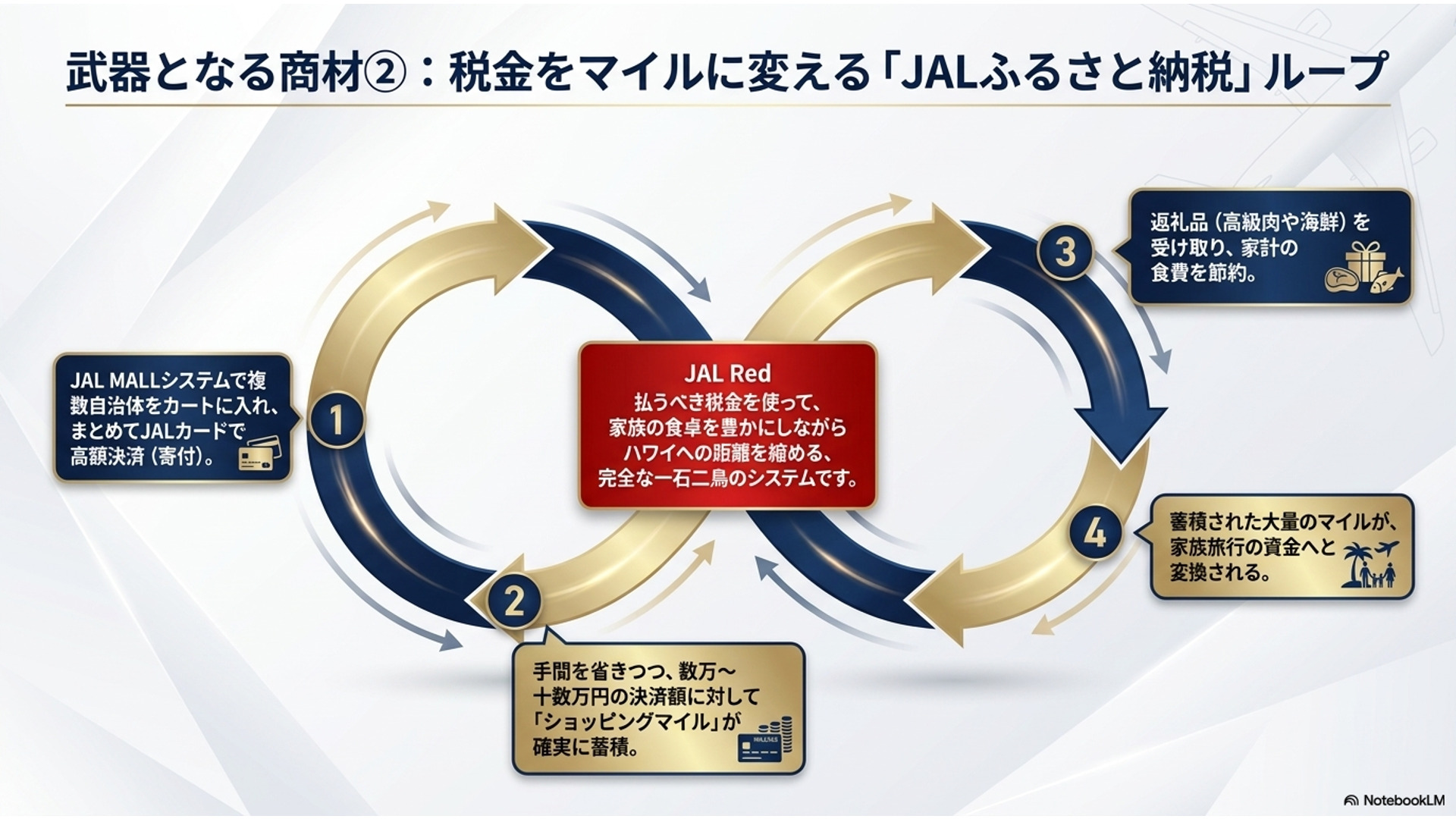 家計の節約とマイル獲得を同時に実現する手段が、「JALふるさと納税」の活用です。