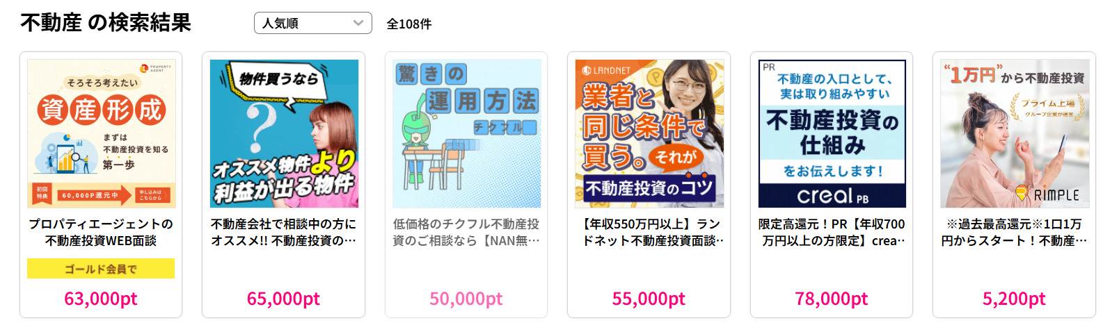 さらに、不動産投資に関するオンライン面談を受けるだけで超高額ポイントを獲得する案件も多数あります。