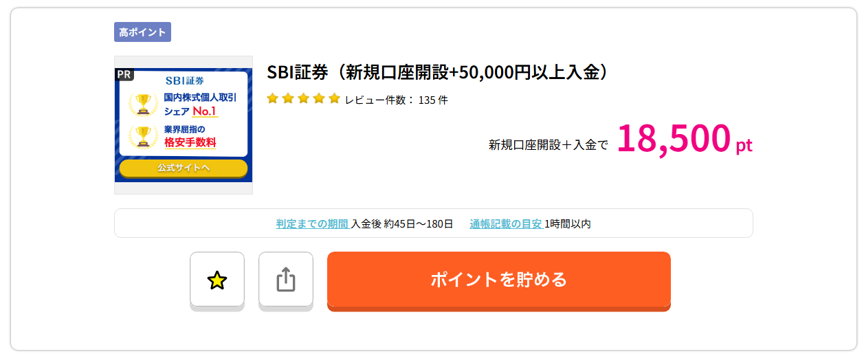 現在、「ハピタス」経由で「SBI証券」の口座開設をすると