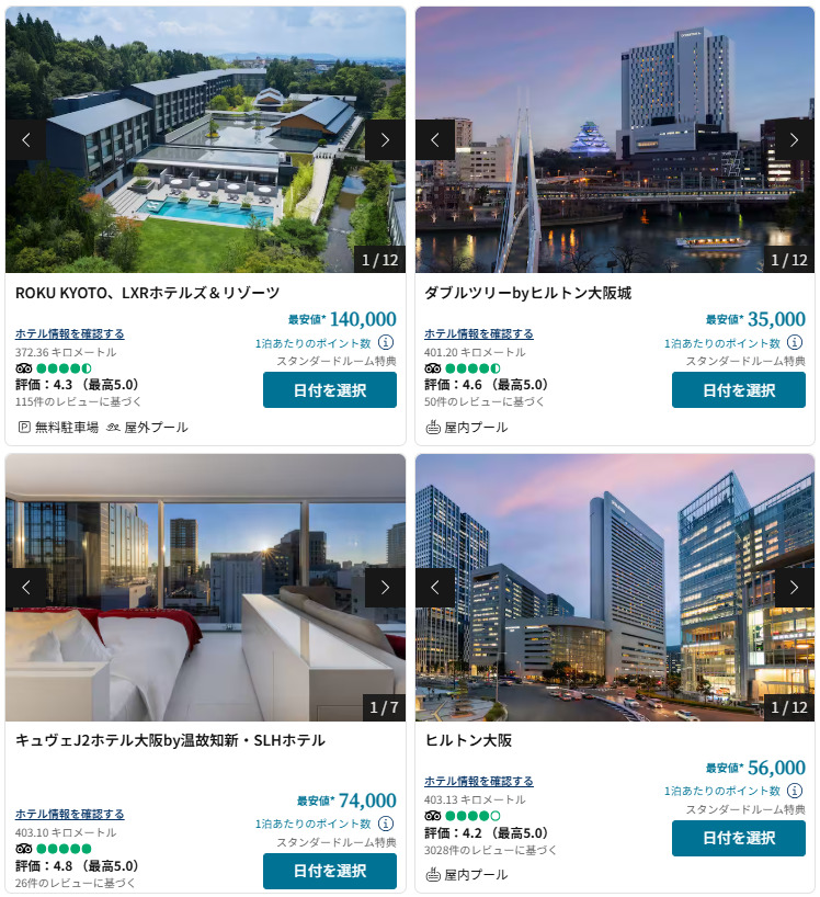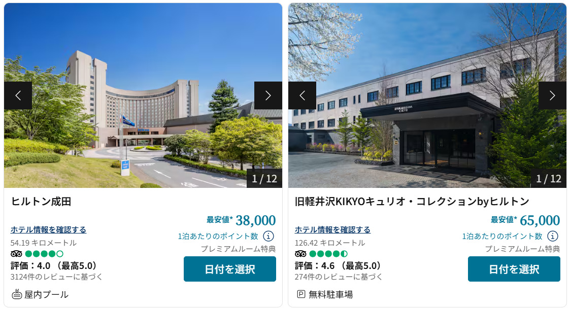 高級ホテルであるヒルトンホテルを手軽に、かつ、お得に利用することができるんだということがわかっていただけると思います。