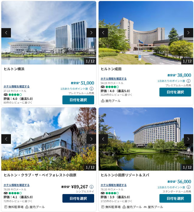 例えば、「ヒルトン小田原リゾート&スパ」だと、