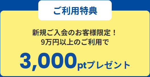 その後、入会月から3カ月目までに合計9万円以上のカード利用をすると、