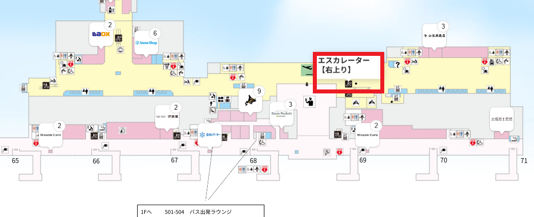 場所:空港中央3F の 保安検査前(以下の図:305)にあります。