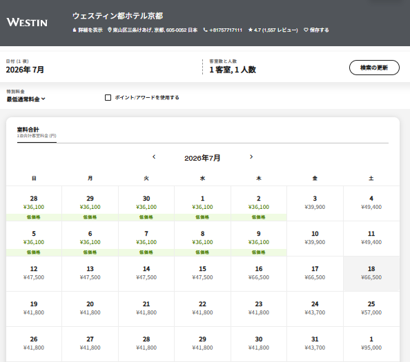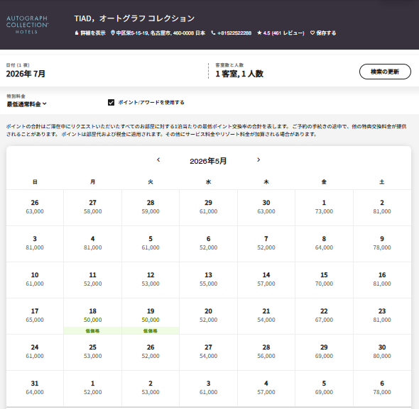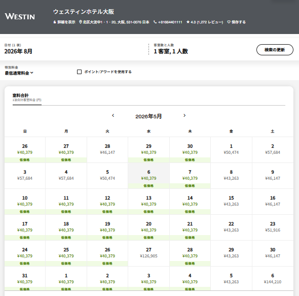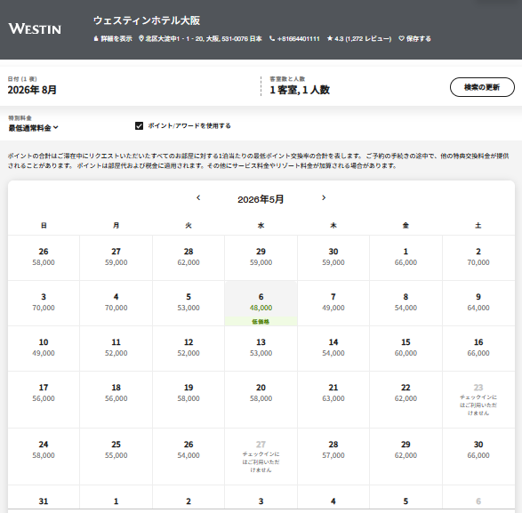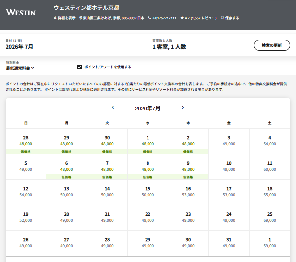 こちらも50000p以下となる日は少なめではありましたが、残り2~3000pをするだけで宿泊できる日が増えるのであれば、