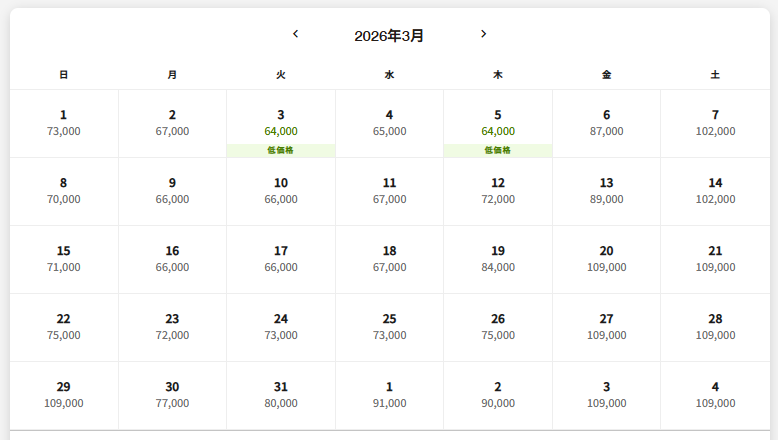 もちろん、その他の66000pなどの日付でも利用できますが、お得に泊まれるのは料金の高い日ですので、今回示した3/26を例示してみました。