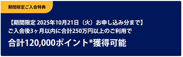 入会後3ヶ月以内に250万円以上のカードご利用で、20000p