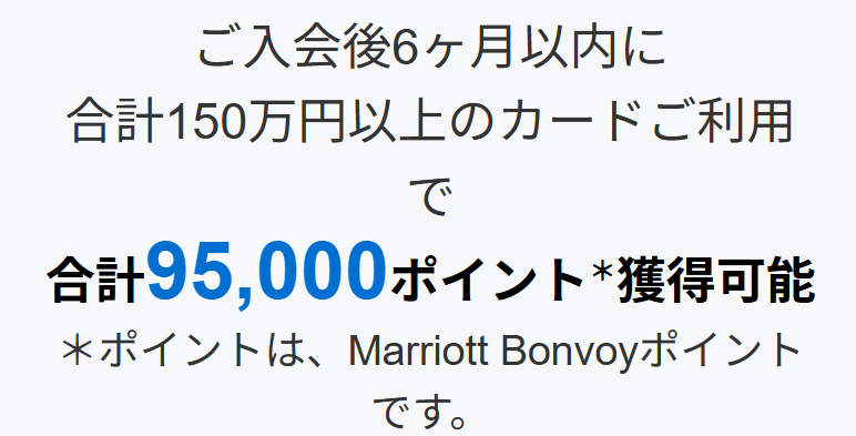 入会後6ヶ月以内に合計150万円以上の利用で、さらに45000マリオットポイント獲得