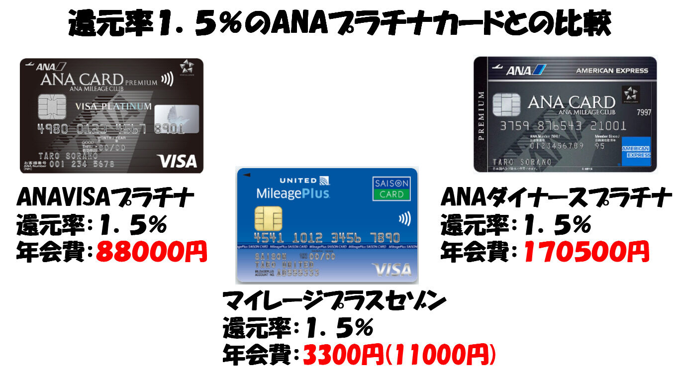 マイル還元率1.5%で他のANAカードと比較