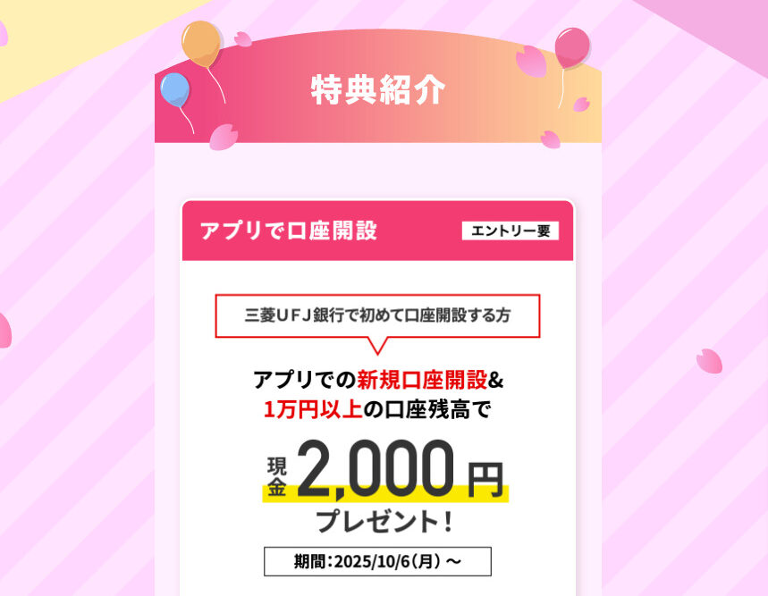 三菱UFJ銀行の公式キャンペーンについてご紹介します。