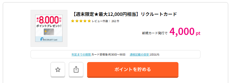 この記事では、「リクルートカード(JCB限定)」をお得なポイントサイト発行で、