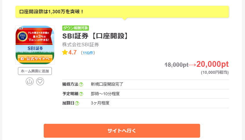 この記事では、SBI証券で口座開設するだけで、ポイントサイト会社から