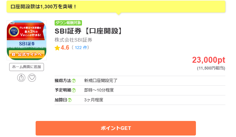 この記事では、SBI証券で口座開設するだけで、ポイントサイト会社から