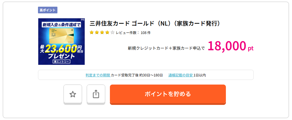 「三井住友カードゴールドNL」のポイントサイト広告は、最近では