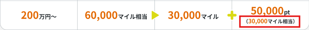 つまり、200万円の決済で、上記のボーナスマイルと通常決済分の合計で、