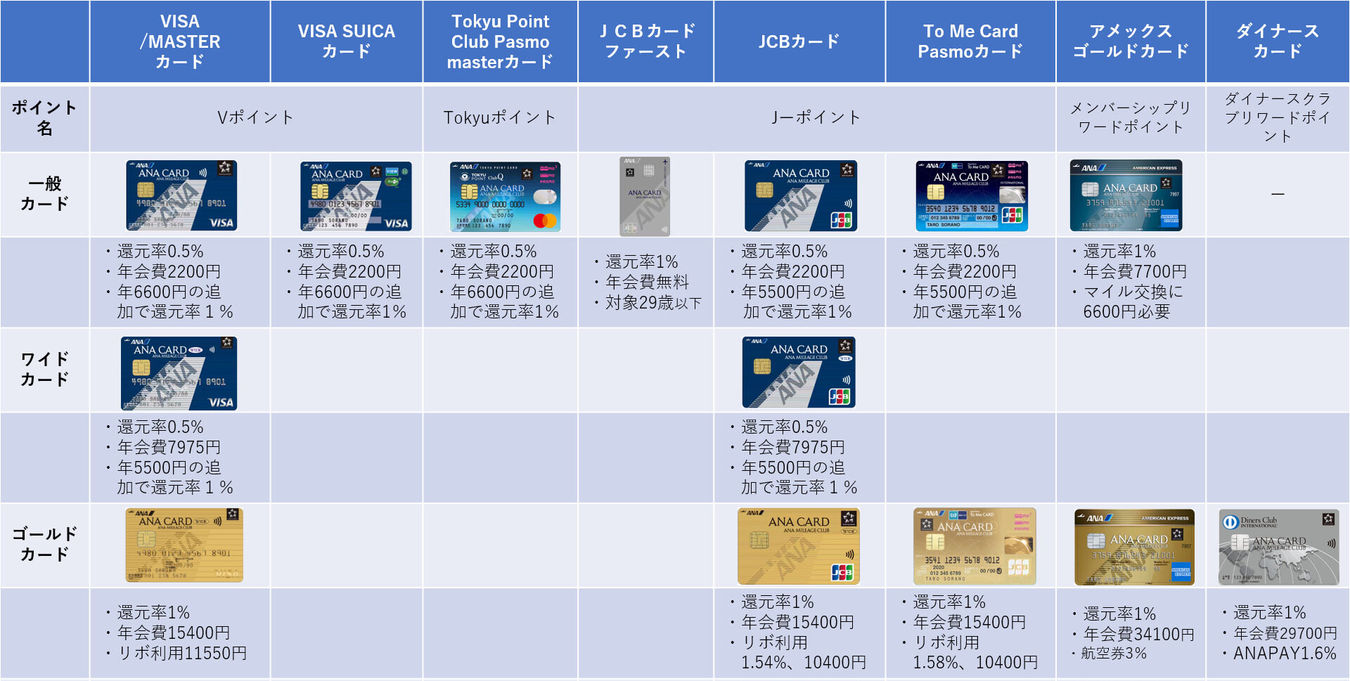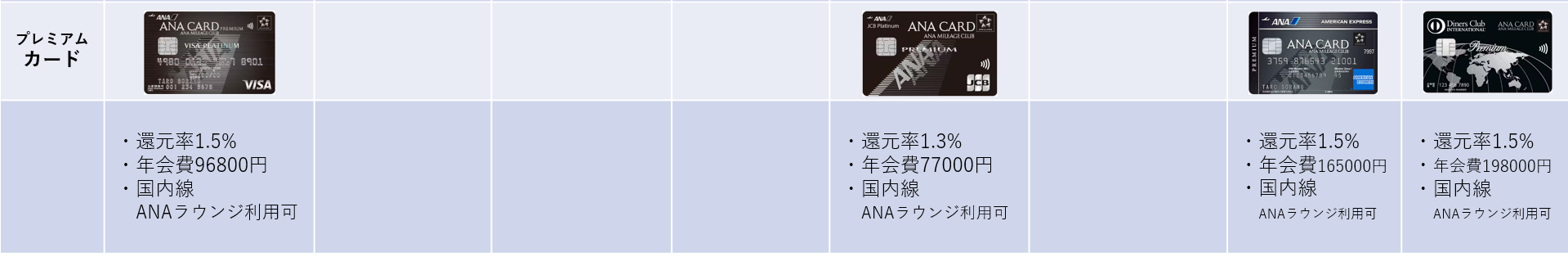 ではここで主なANAカードをご紹介して行きたいともいます。