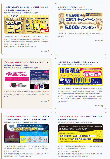 「UI銀行」は、さまざまなキャンペーンが入れ代わり立ち代わり開催されています。