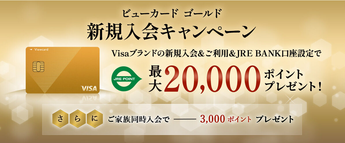 現在、VISAブランドの「ビューゴールドプラスカード」を発行すると、公式キャンペーンとして最大20000pを獲得することができます。