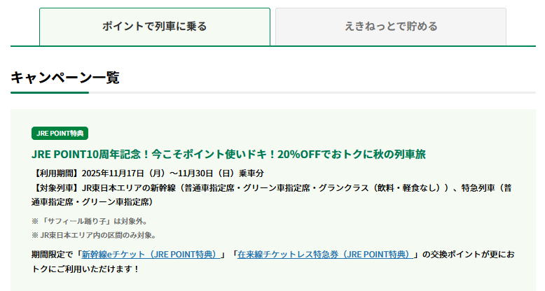 「JREPOINT特典チケット」を利用できるキャンペーンが開催されます。